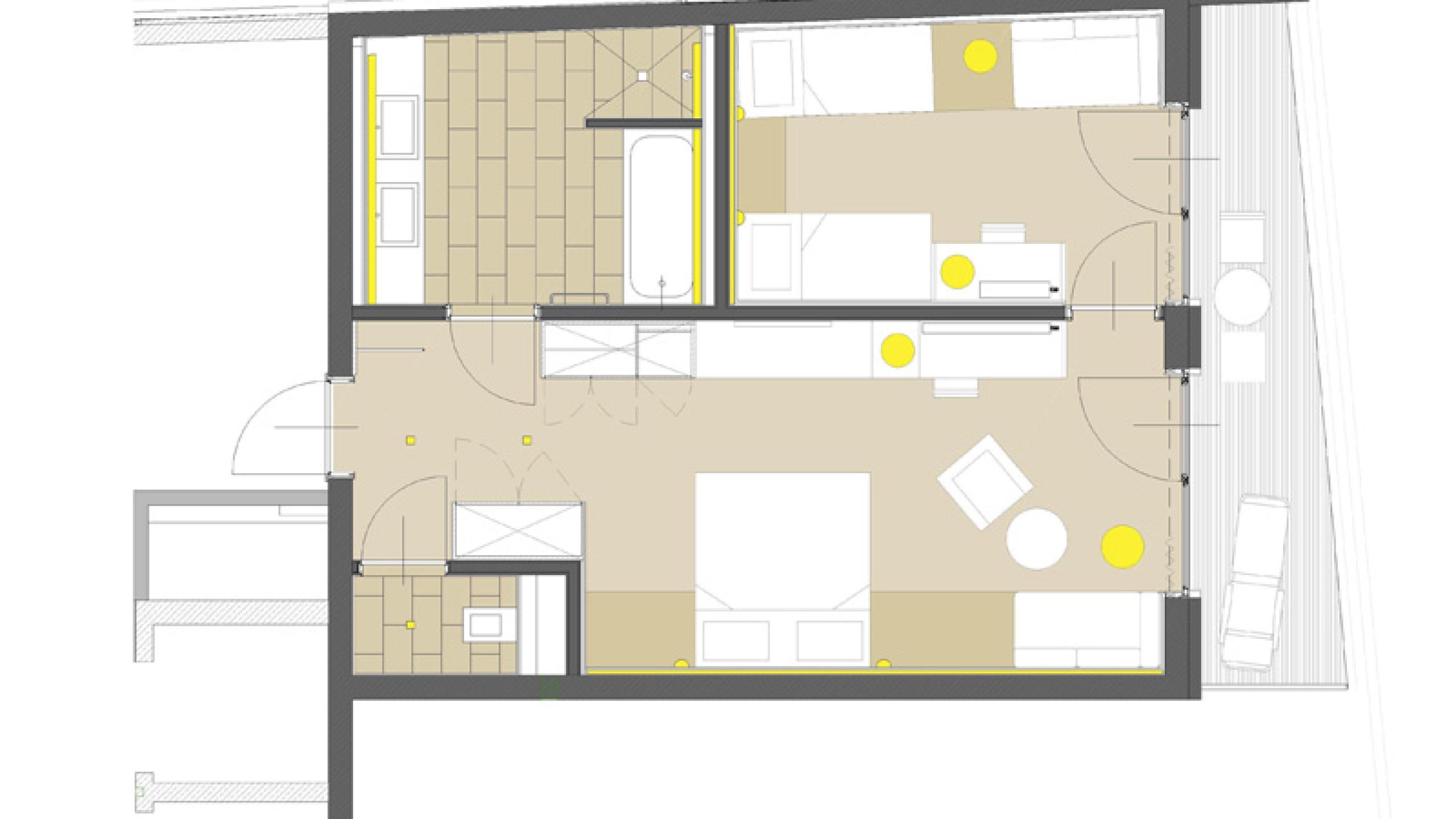 Plenty of space to spread out for parents and children. Our family room with 47 m².